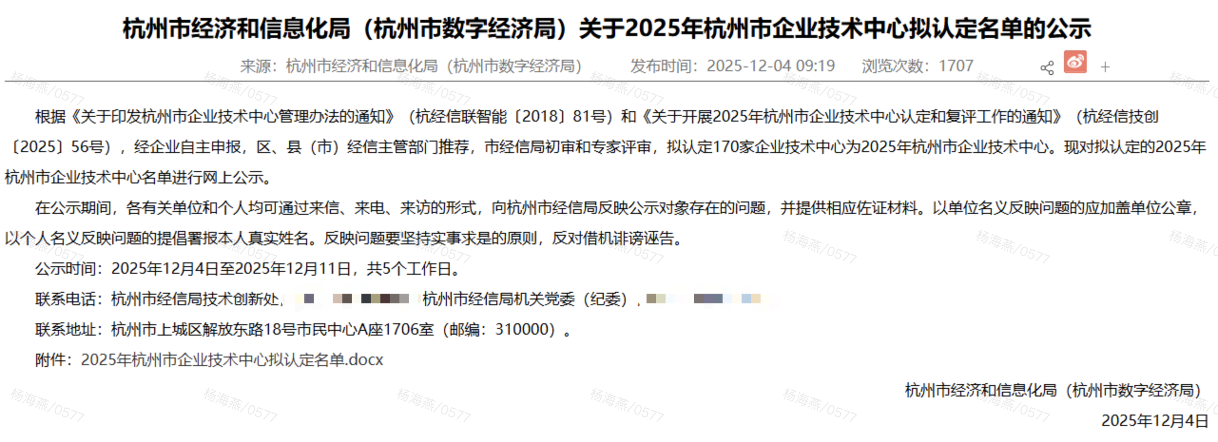 On December 4th, the Department of Economics and Information Technology Hangzhou City announced the list of Municipal Enterprise Technology Center. The Technique Center of Blue Aspirations was on the list of those identified.